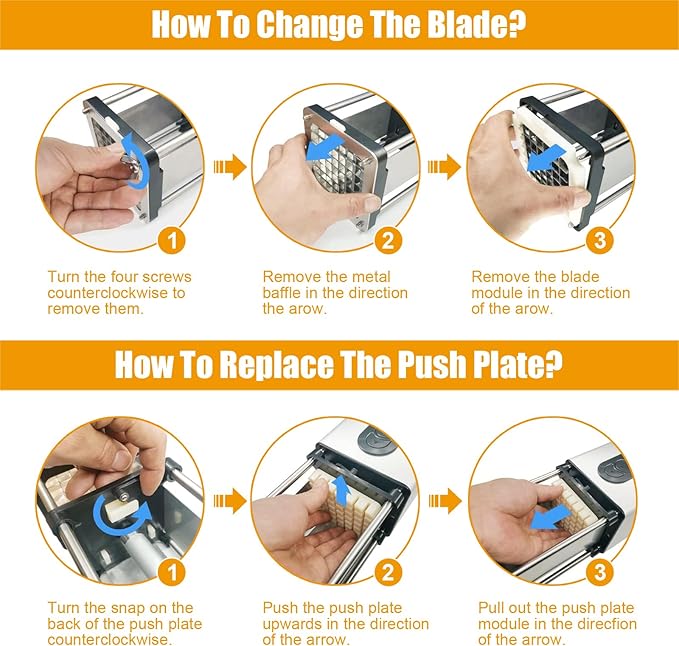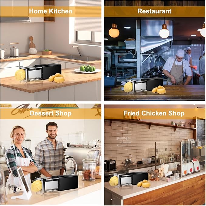 - 【Electric French Fry Cutter】: You just need to connect the Fstcrt electric french fry cutter to a regular household or commercial power source, and it can work by evenly cutting potatoes into French fries. Compared to traditional manual French fry knives, it is more labor-saving and efficient.