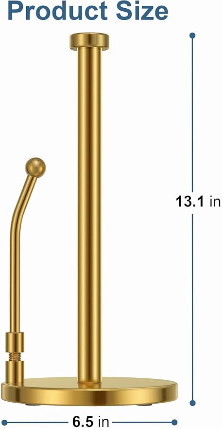 SMARTAKE Paper Towel Holder, Paper Towel Dispenser Standing Weighted Base Non Slip, Spring Arm Fit Most Size Paper Roll, Stainless Steel Kitchen Roll Stand for Home Kitchen Countertop Tabletop, Gold