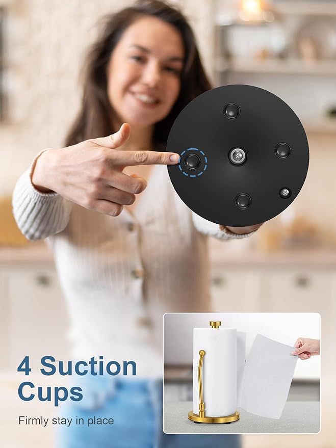 - Suction Cups Design: Equipped with 4 suction cups under the base, ensuring a firm grip on countertops, dinner tables, etc. Avoids sliding and skidding, a must-have standing paper towel holder for your home.