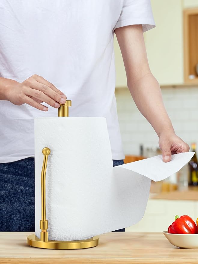 - Premium Roll Dispenser: Stable weighted base with suction cups to stay the paper towel holder in place when you are tearing paper sheets. It also prevents the mental scratching of your countertop or table.