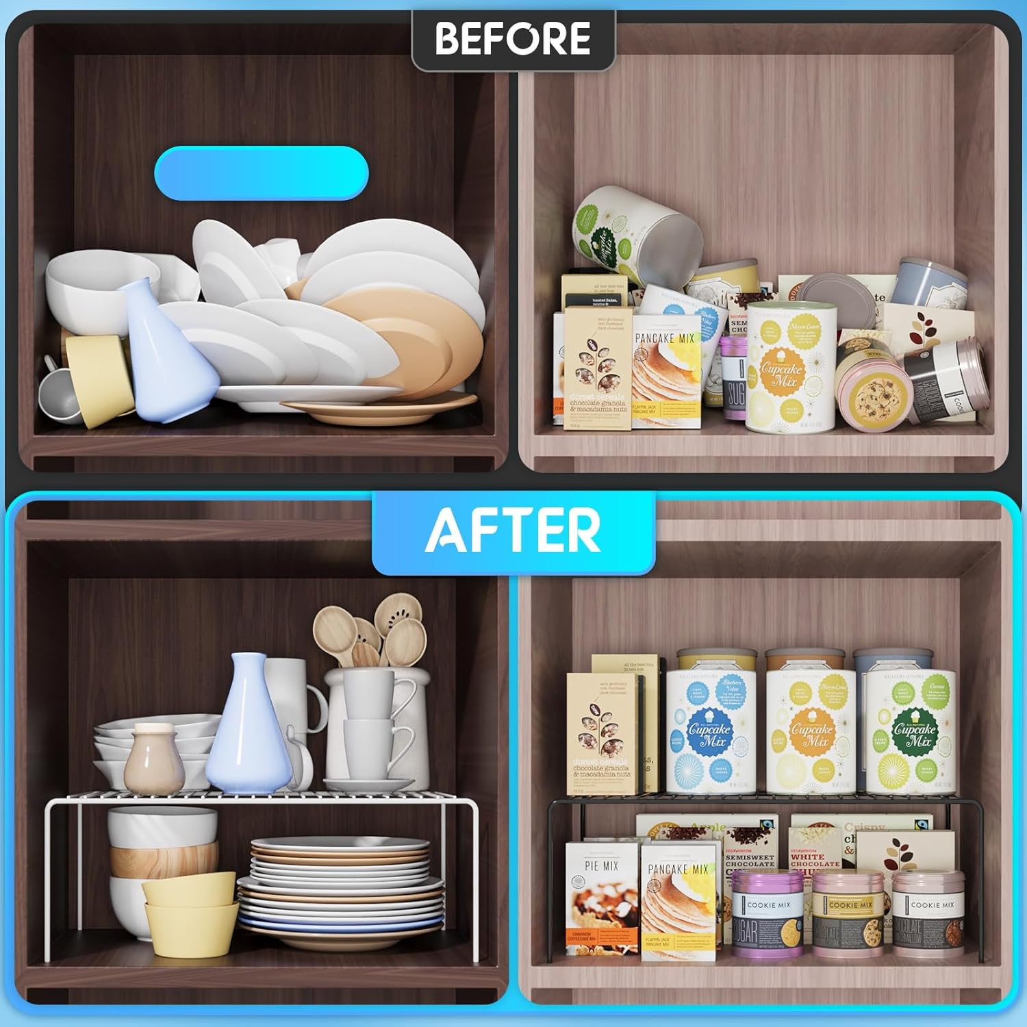 - Space Saver Help Shelves: This set of 6 helper shelves will double your space! Perfect for keeping everything organized in kitchen cupboards, pantries, bathroom cabinets, closets, counter tops, under the sink, or anywhere you need extra room