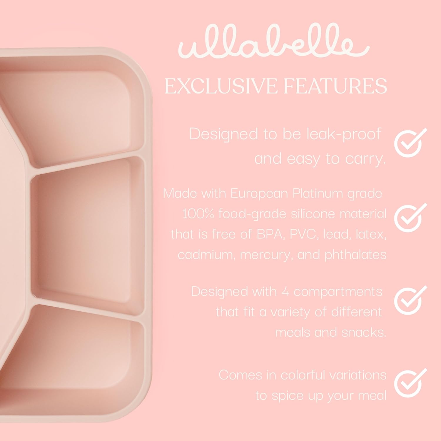 Ullabelle Leak Proof Bento Box Food-Grade Silicone Bento, BPA, Phthalate, Lead, & PVC Free - Lunch Box for Daycare, Kids, & Adults - Leak Resistant Sets With Lids Snack Box Container (Periwinkle 4)
