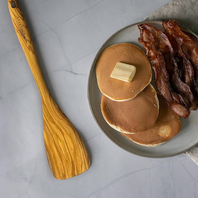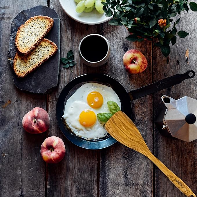 - 【Luxurious Olive Wood Construction】This exceptional Spatula/Turner is crafted from luxurious, one-piece olive wood sourced from the southern regions of Italy. The varying shades of olive wood lend an artistic and elegant touch, with unique and rich textures. Not only is it aesthetically pleasing, but it's also robust, durable, and non-toxic.