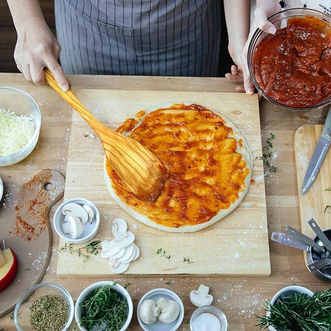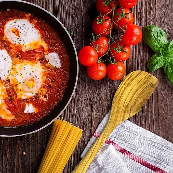 - 【Premium Olive Wood Construction】This exceptional Corner Spoon is crafted from luxurious, one-piece olive wood sourced from the southern regions of Italy. The varying shades of olive wood lend an artistic and elegant touch, with unique and rich textures. Not only is it aesthetically pleasing, but it's also robust, durable, and non-toxic.