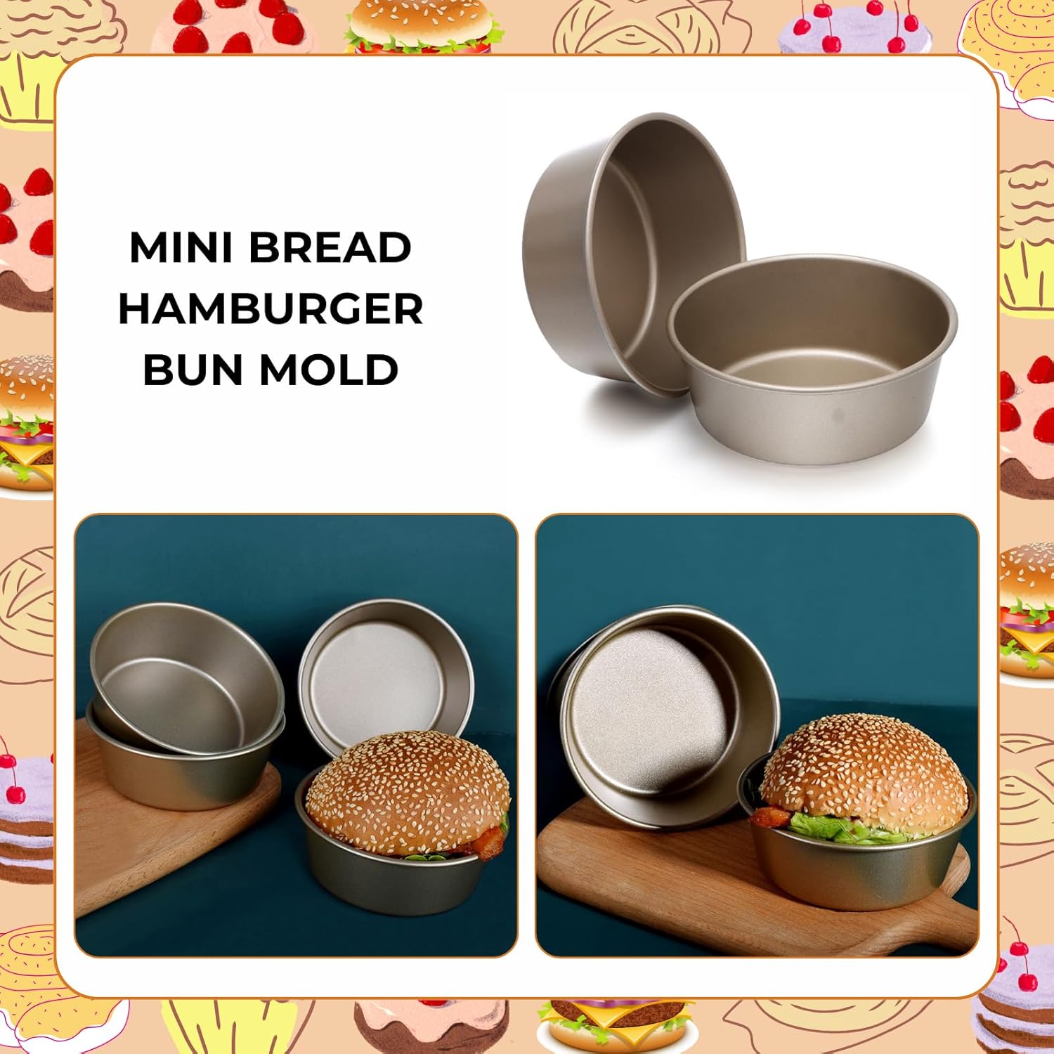 - š° Package Include: You will receive 4pcs 4inch mini round cake molds, which is perfect for creating delicious homemade buns for your burgers or delicious mini cake. The rolled edge design is smooth and easy to get.