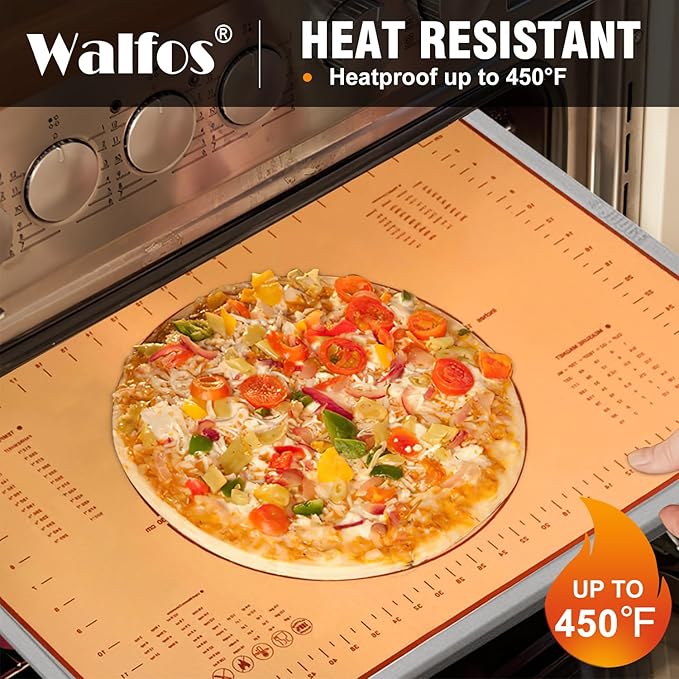 - 【 FOOD GRADE SILICONE & BAKING PASTRY MAT】 - Walfos thicken food grade silicone baking pastry mats have anti stick surface and non slip bottom. It has accurate scale, helps you to measure the foods better. The extra large baking mat keeps worktop clean. The baking mat is high temperature resistant, heatproof up to 450℉, can be used in oven safely. It is good for pastry mat, table mat, baking mat, pizza pad & countertop mat. The marble rolling pin meets all your cooking and baking needs. It can also be used as a baked gift for family or friends.