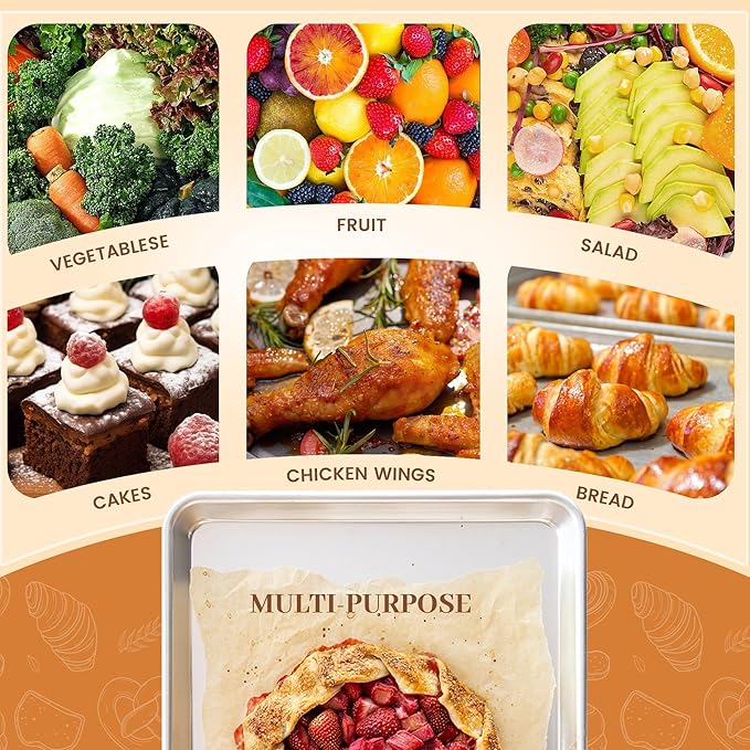 - Healthy Material: The sheet pans are NSF-listed rust-proof and anti-distortion. A safe choice for baking, ensuring no harmful substances leach into your food