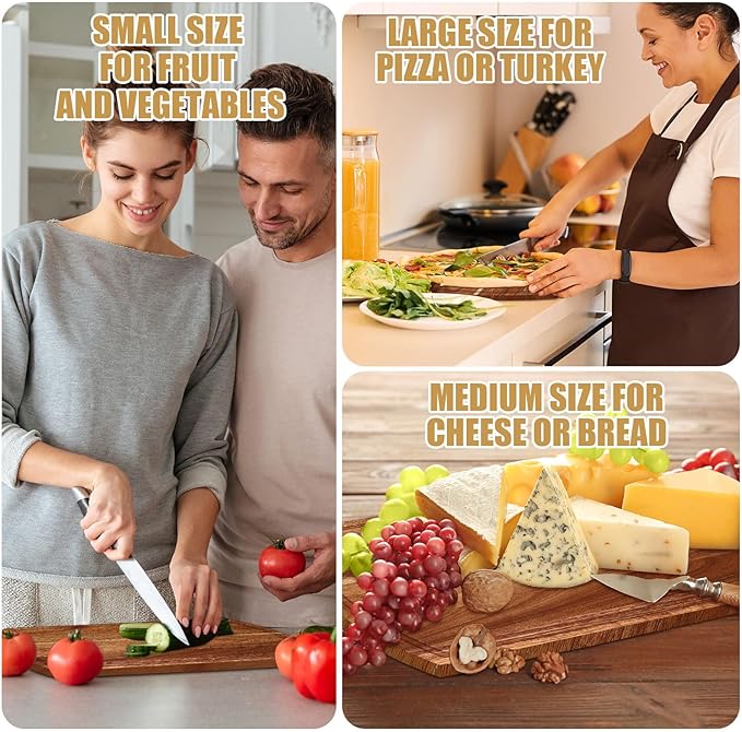 - Appropriate Size: each wooden cutting board measures about 12 x 16 inches, and the thickness is about 0.3 inch, large in size and light in weight, can cut vegetables, meat, fruits, cakes, bread, herbs, cheese and salads and many more Grow what you want, let you give full play to your culinary skills