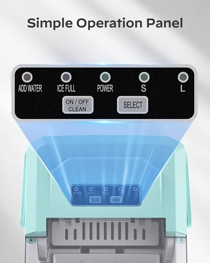 - SIMPLE CONTROL PANEL: Enjoy fresh ice with 3 easy steps! Fill the reservoir, switch the unit on, then select small or large ice cubes. The ice maker features an indicator light to notify when water needs to be added or ice is full. Upgrade your home or office with an ice maker that is both fast and easy to use.