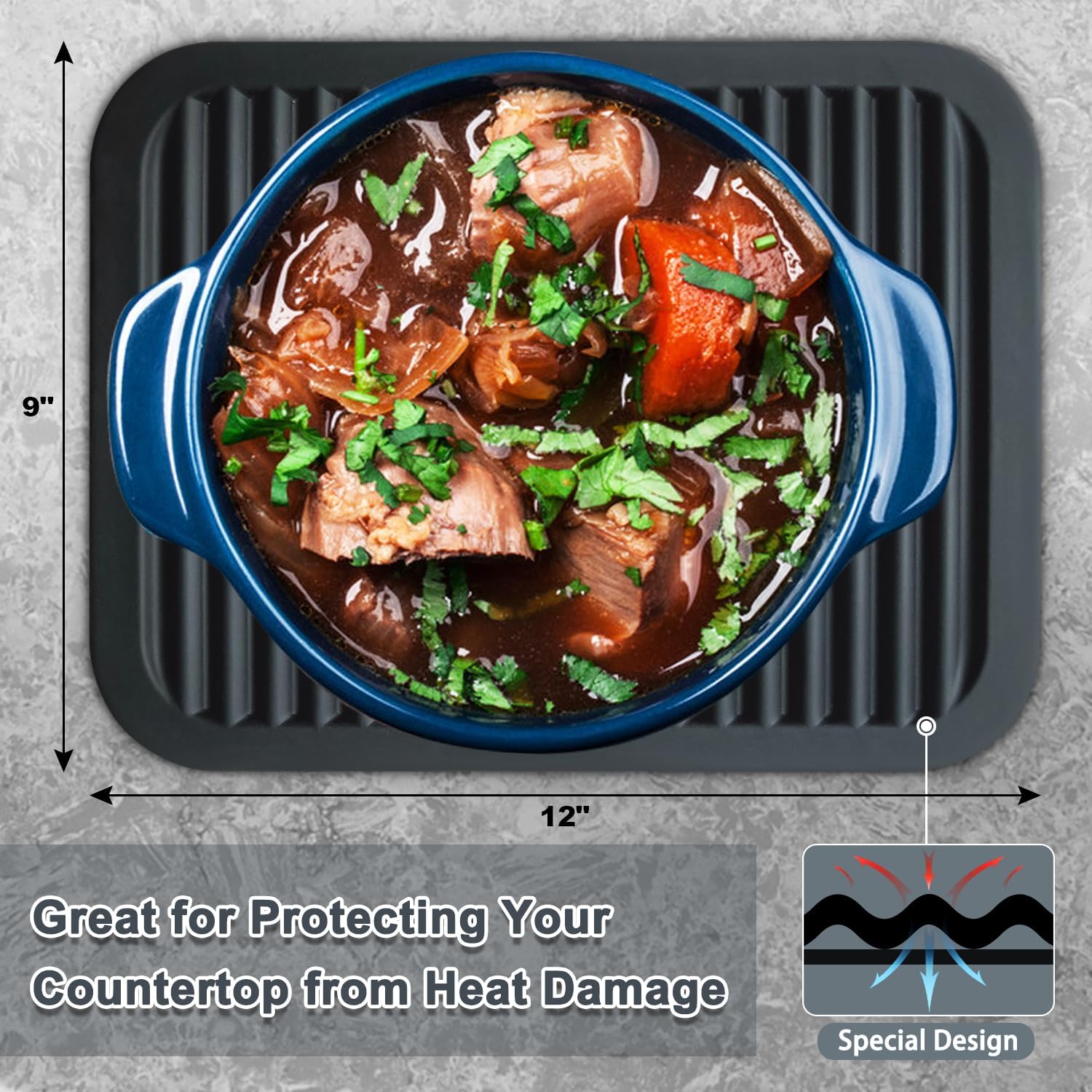 - MULTI-FUNCTIONAL: As the trivets for hot dishes are non-slip, flexible and soft, not only suitable for large cookware such as air fryers, coffee makers, but also can be used as pot holder, dish drying mats, spoon rest, pet bowl tray, pot mat and more. Folded up silicone pot holders are also perfect for use in the oven, microwave or refrigerator to protect your hands from hot and cold