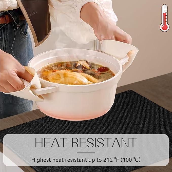 - THICKENED AND HEAT-RESISTANT: Our placemats feature a double-layered faux linen fabric which is heat-resistant up to 220°F (100°C) . They will prevent hot dishes, stains, and scratches from damaging your tables or furniture.