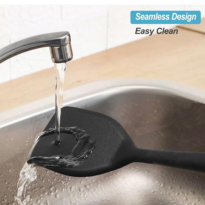 Silicone Spatula Turner Set, High Heat Resistant Spatulas with Seamless One Piece Design, Nonstick Rubber Flippers Utensils for Baking & Cooking,BPA-Free, Black,11 IN