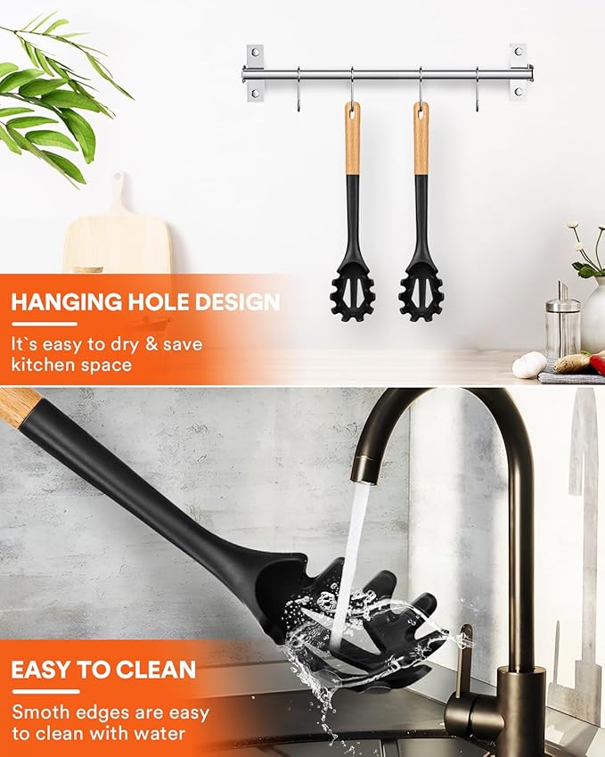 - Just Want To Provide The Best For You: The soft food-grade silicone head is designed for noise-free cooking. Unique sawtooth design, easy to pick up noodles. Whether it is used for stirring or serving spaghetti. Our silicone pasta fork will add more fun to your kitchen