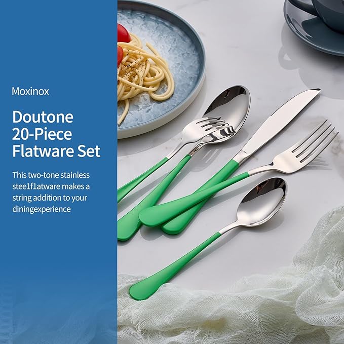 20-Piece Green Silverware Set, 18/0 Stainless Steel Green Handle Flatware Set, Service for 4, Modern Cutlery Set Includes Dinner Knives Forks Spoons, Mirror Polished, Dishwasher Safe
