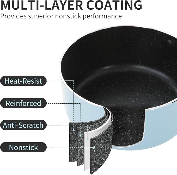 - [Multiple Layer Non Stick Coating]Premium non stick interior featured exceptionally durable, double coated, and scratch resistant,which is ideal for easy cooking,re-heating vegetables,sauces,pasta or soup.Easy to clean for superior nonstick performance,just clean by soft sponges.