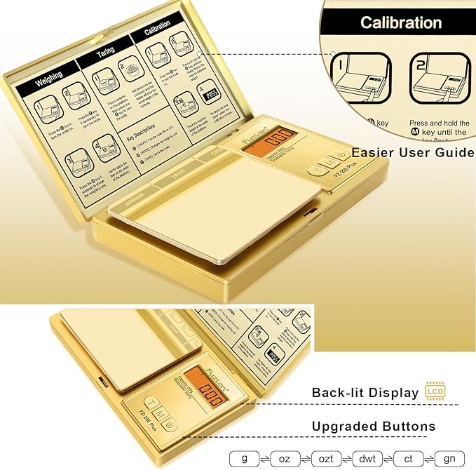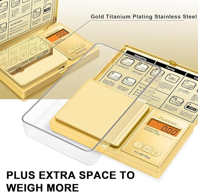 Fuzion Digital Pocket Gram Scale .01 Gram Accuracy, Gold Titanium Plating, 200g Digital Scale, Small Scale for Food, Jewelry, Herb, Spice, Coin - Weight Gram and Oz