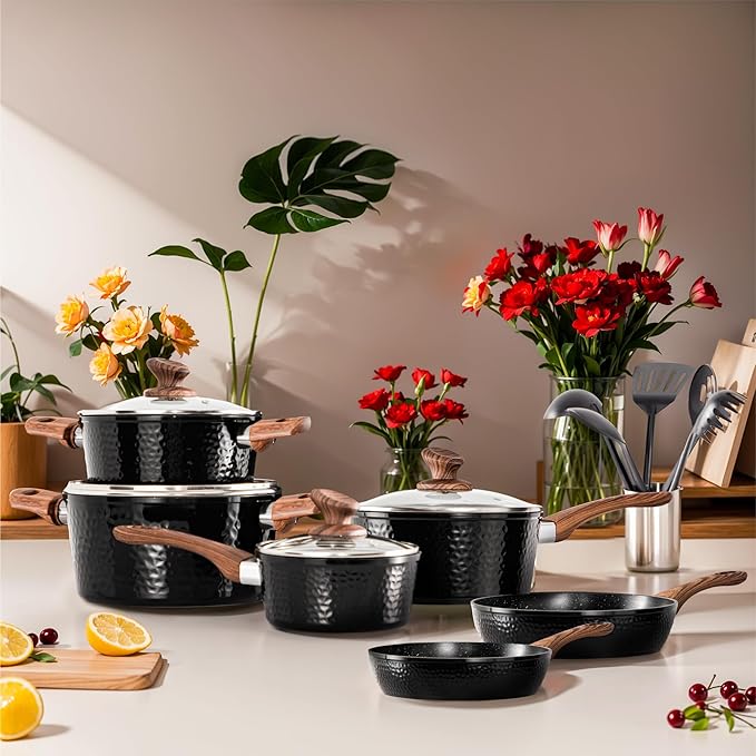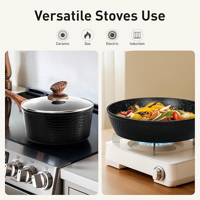 - šš”šØš®š š”ššš®š„ ššš¬š¢š š§ ššØš« šš«šššš¢ššš„š¢šš²: Anti-scald handles keep your hands safe, while the deeper pan shape allows for versatile cooking techniques, from stir-frying to simmering. Versatile kitchen cookware set for various cooking methods