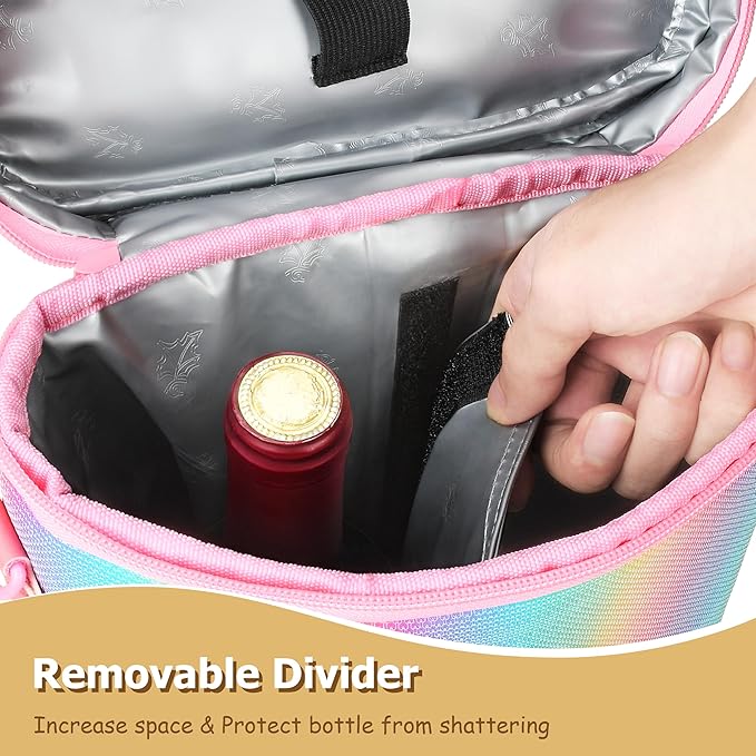 - PROTECT YOUR WINE-The interior padded divider of this bottle cooler bag keeps your bottles safe and prevents them from clashing, while also allowing it to be used as a wine cooler or insulated bag for water and beverages. Whether on a cruise, beach trip, or just traveling, this wine carrier will keep your drinks secure.