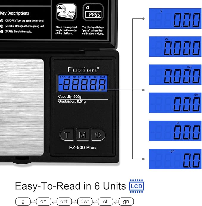 - Multiple Units Display: Pocket Scale 6 Units of Measurement: Grams, Ounces, Grains, Troy Ounces, Pennyweights, Carats. Back-lit LCD Display, Ultra Fast Reading.