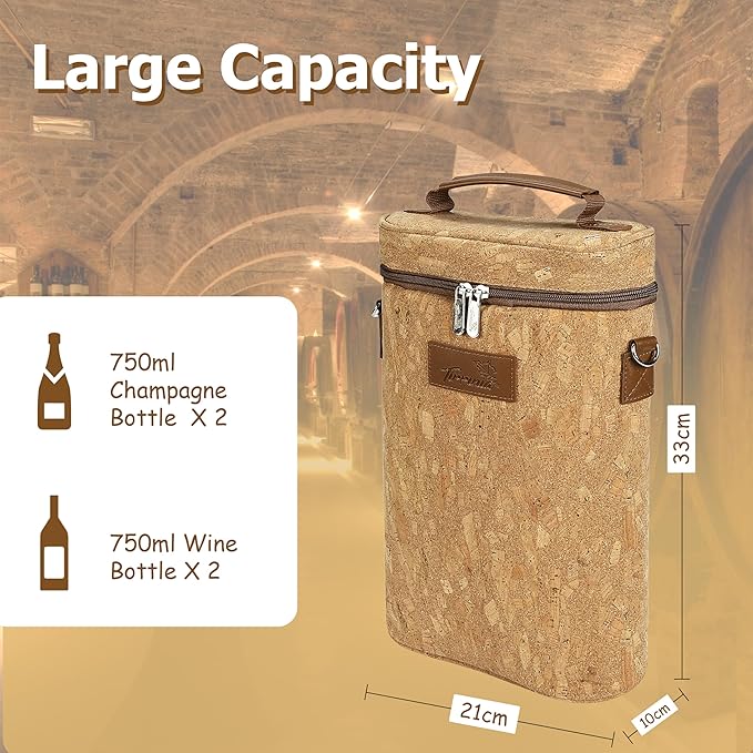 Tirrinia 2 Bottle Wine Gift Tote Carrier - Leakproof & Insulated Padded Versatile Wine Cooler Bag for Travel, BYOB Restaurant, Wine Tasting, Party, Dinner,Gift for Wine Lovers, Cork