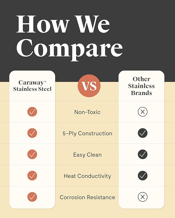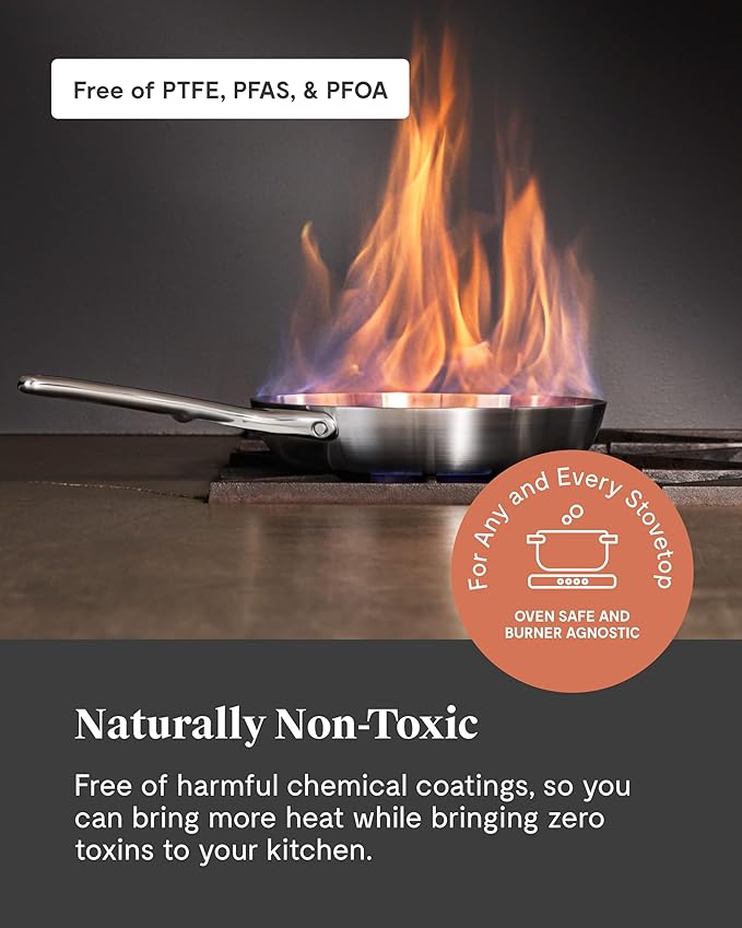 - DESIGNED FOR CLEAN COOKING: Our stainless steel cookware is free of toxic materials like PFOA, PTFE, PFAs, lead, cadmium, or toxic metals.
