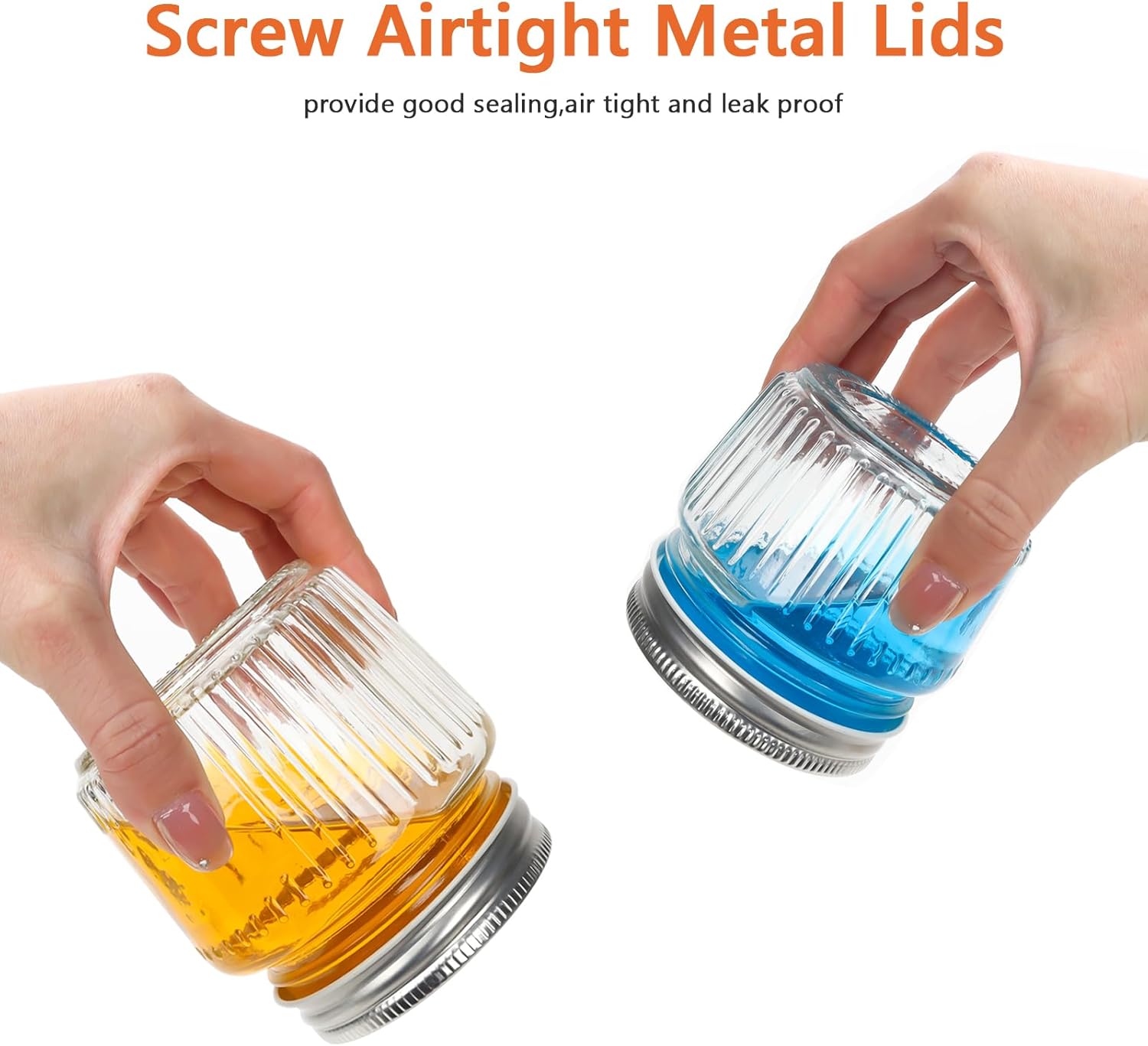 - Package Include: 6 Pack 8 oz/250 ml mason jars with silver screw metal lids. This mason jar have an elegant design and the transparent glass can clearly distinguish what is inside
