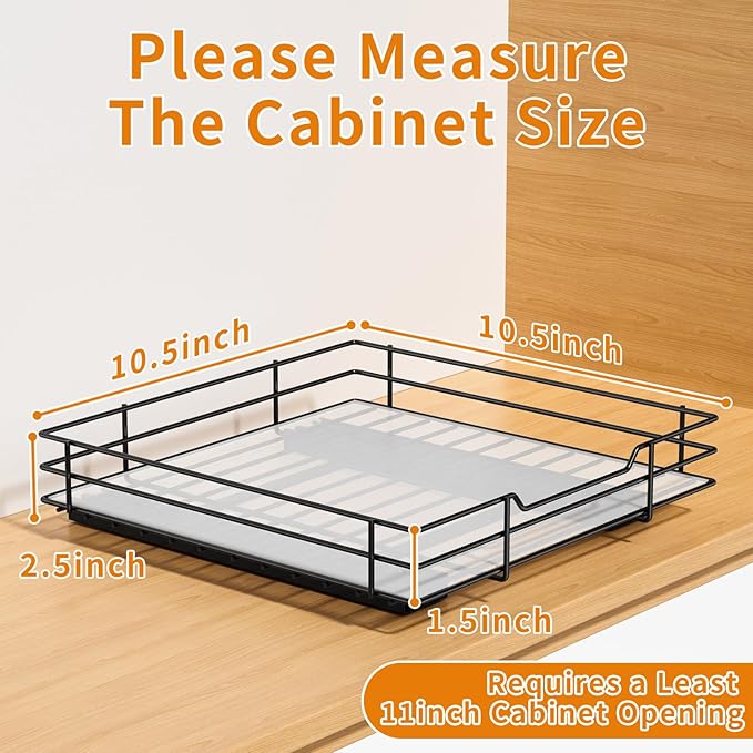 RCHYFEED Pull Out Spice Rack Organizer for Cabinet,Slide out Spice Organization for Inside Cabinets,Heavy Duty Seasoning Organizer Fits Kitchen and Pantry,Sauces,Canned (10.5''Wx10.5''Dx2.5''H)