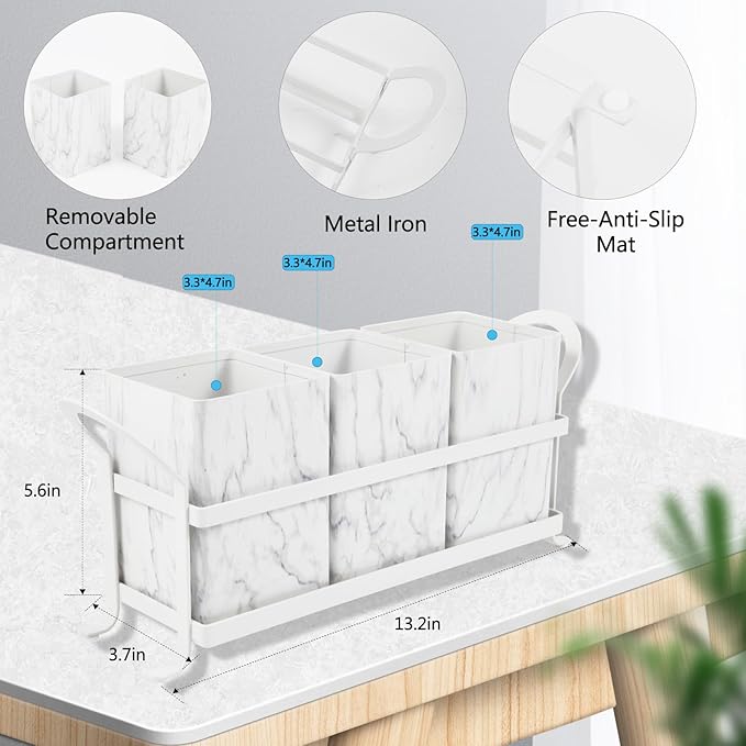 - 【The Perfect Gift】With Moden white marble looking practical design, this silverware holder for countertop makes for the best gift for anyone on any occasion. From housewarming parties and birthdays to Mother's Day, Christmas, or any special day-Give the gift of organized living with this cutlery holder for countertop. Your friends and loved ones will be impressed by this silverware caddy for party.