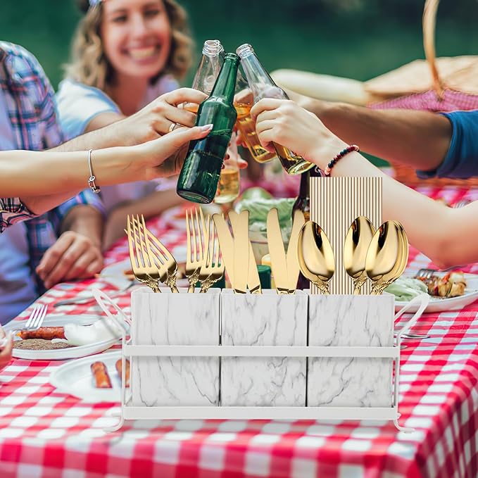 - 【Versatile Uses】Whether you need a simple utensil organizer for countertop or a camping organizer, this caddy has got you covered. Its chic and classic look makes it ideal as a picnic caddy, perfect for summer backyard activities like barbecues or holiday feasts with family. It's also well-suited for restaurants, cafes, and hotels.