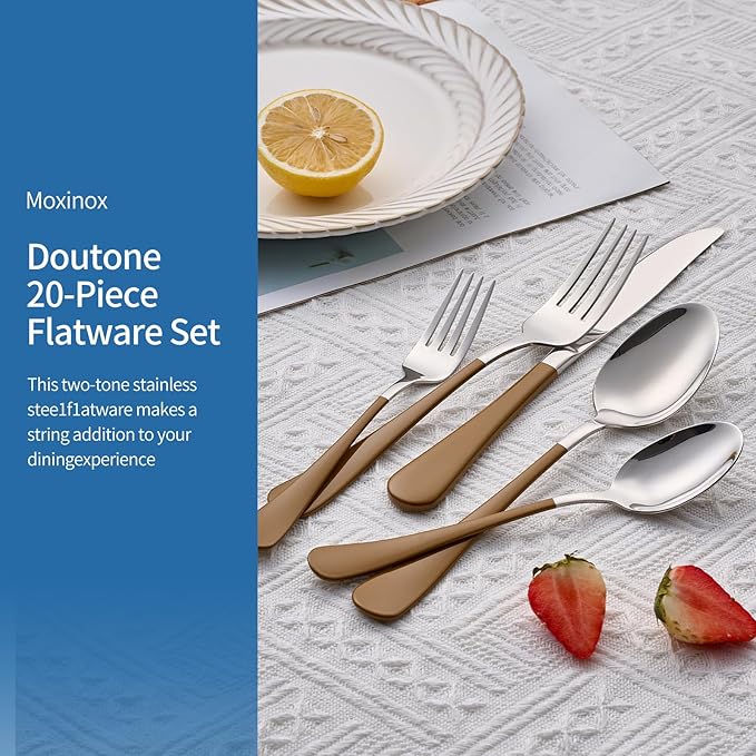 20-Piece Coffee Color Silverware Set 18/0 Stainless Steel Coffee Color Handle Flatware Set Service for 4 Modern Cutlery Set Includes Dinner Knives Forks Spoons, Mirror Polished Dishwasher Safe
