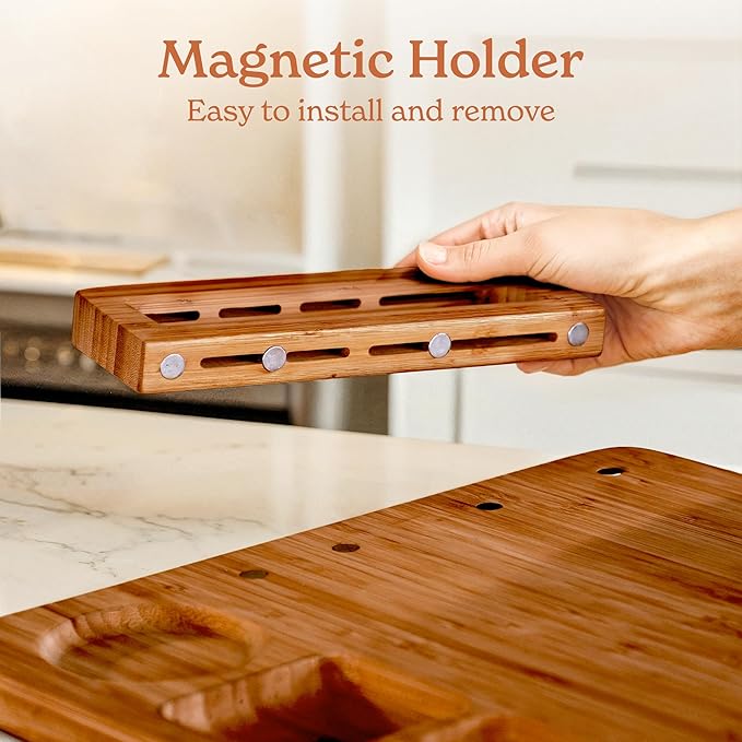 - Bountiful Benefits of Bamboo - Enjoy the eco-friendly benefits of bamboo, a highly renewable and nonporous material. It resists liquids, odors, and stains, offering a durable and low-maintenance board with natural aesthetic appeal.