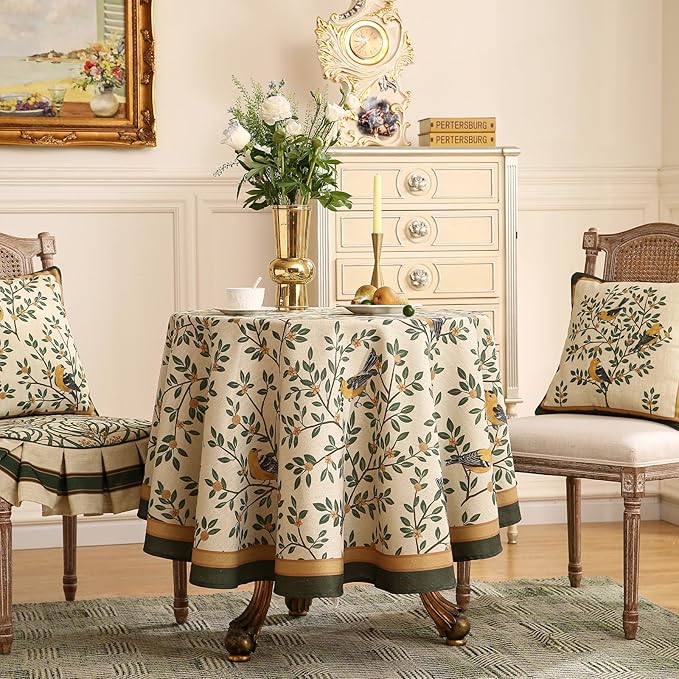 patdrea Designer Floral Linen Table Cloth Durable Breathable Tabletop Cover Dacorative Kitchen Dining Tablecloth for Round Tables for Kitchen Dining Parties,Holiday Christmas,Diameter 55"