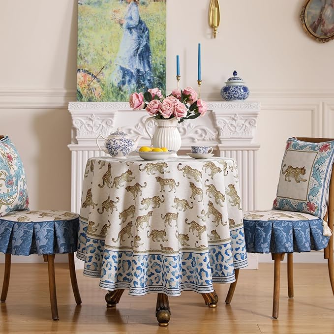 patdrea Leopard Animal Linen Table Cloth Soft Breathable Tabletop Cover Dacorative Kitchen Dining Tablecloth for Round Tables for Kitchen Dining Parties,Holiday Christmas,Diameter 67"