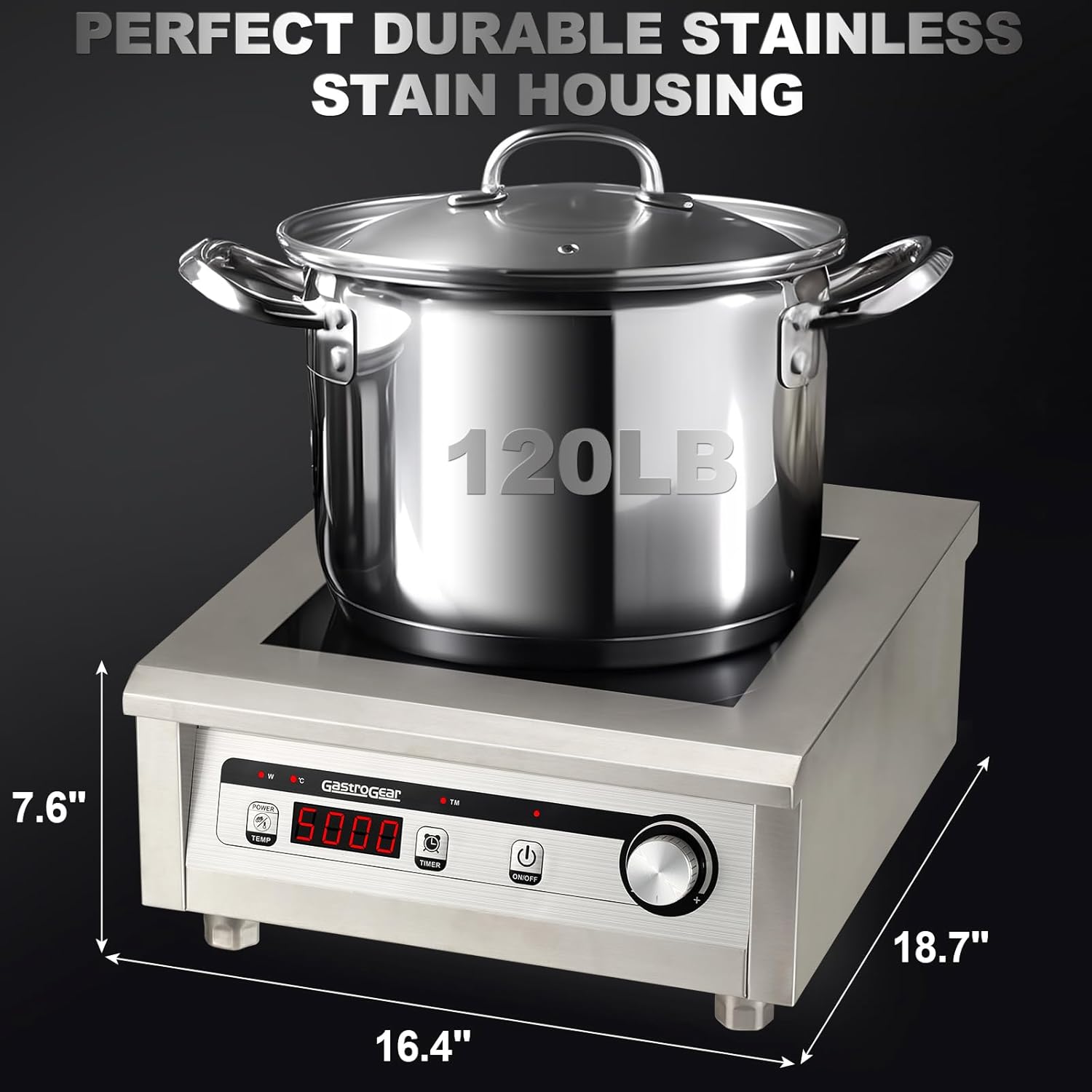 - Superior Heat Dissipation: GastroGear's commercial hot plate is built with thick stainless steel and sturdy cylindrical legs for durability and strong load-bearing support. It features dual fans and rear air ducts that quickly dissipate heat, ensuring efficient cooling