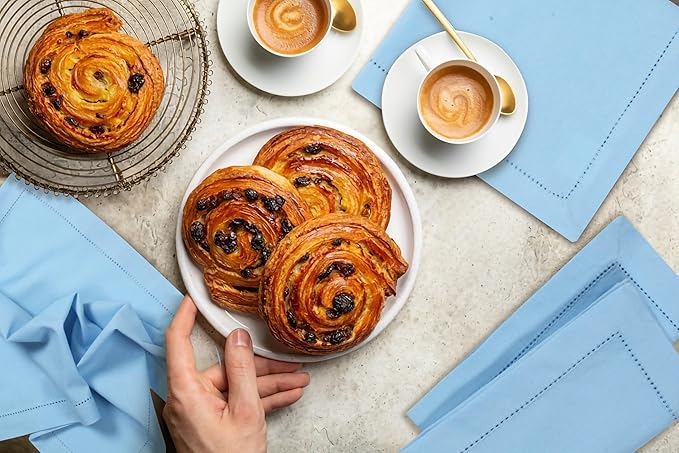 Bedding Craft Cloth Dinner Napkins Set of 12 – 18x18 Airy Blue Linen-Look Hemstitched – Soft Machine Washable Reusable Napkins for Weddings, Parties & Elegant Table Settings