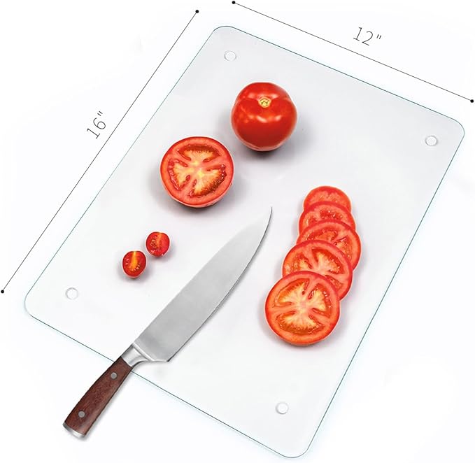 - ✅【Dimensions】The precise dimensions of this tempered glass cutting board are12 ×16 inches / 40cm×30cm