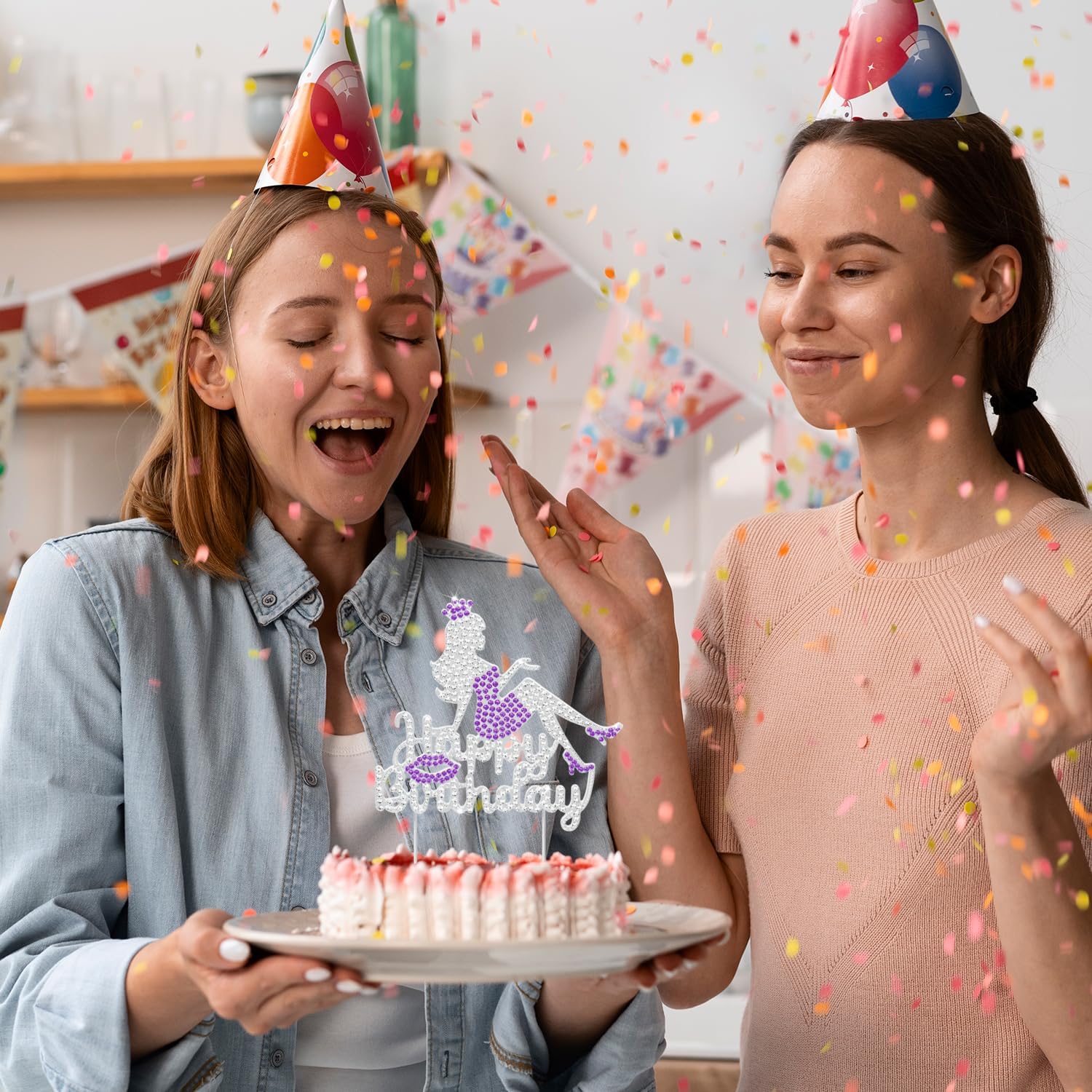 LINGTEER Happy Birthday Crown Queen Lady Rhinestone Cake Topper - Cheers to Makeup Spa Birthday Party Cake Centerpieces Decorations Gift Sign - Purple