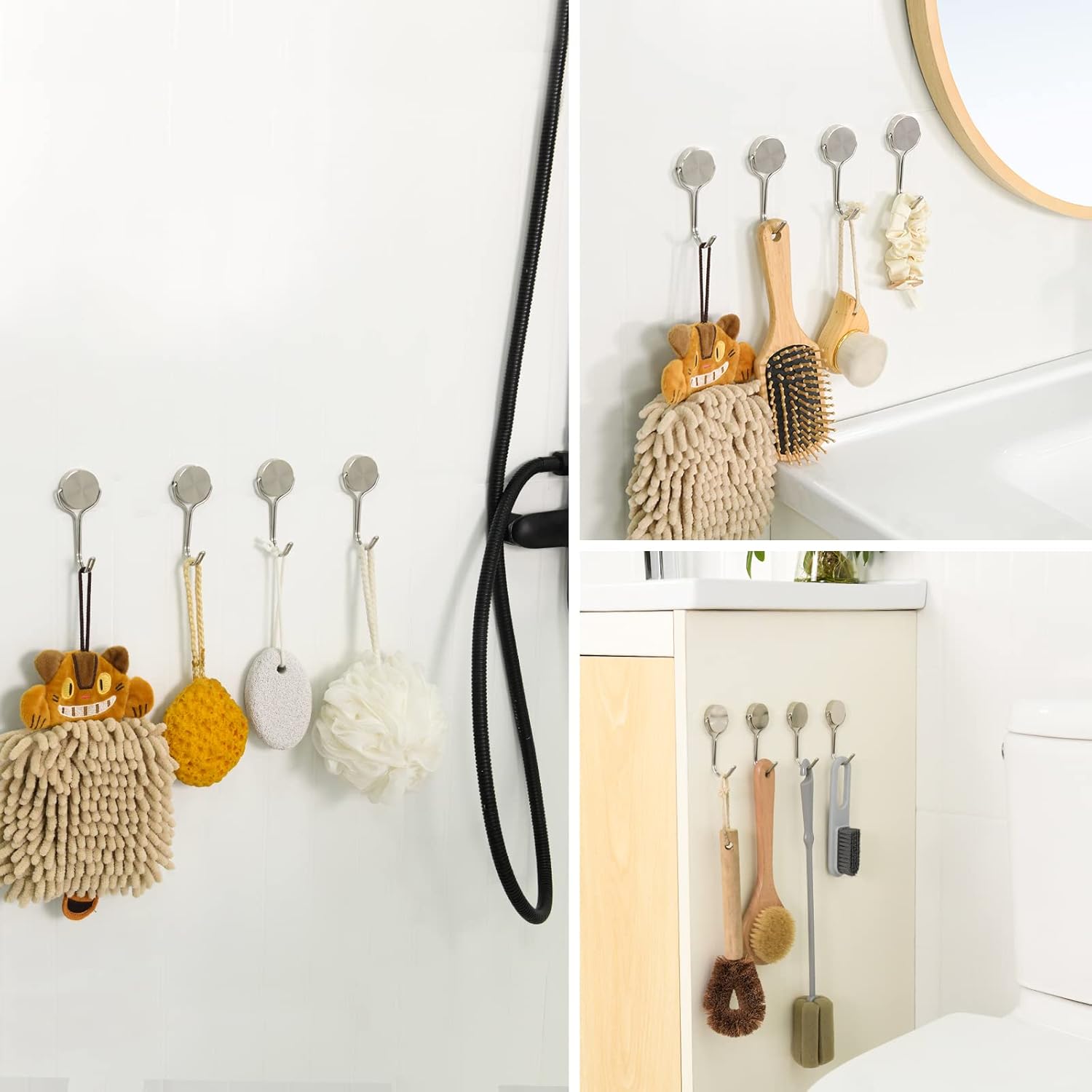 - 【Stainless Steel, Anti-rust】These magnetic hooks made of stainless steel, waterproof and rust-proof. After three layers of anti-rust treatment for the round base part , smooth surface, no scratch,long-term use will not rust.