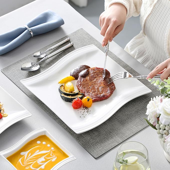 - Modern Aesthetics & Classic Elegance - Inspired by a fusion of modern style and natural elements - low-profile square and wavy-shaped design, MALACASA plates and bowls sets seamlessly transitions from casual to formal settings, adding sophistication to every meal.