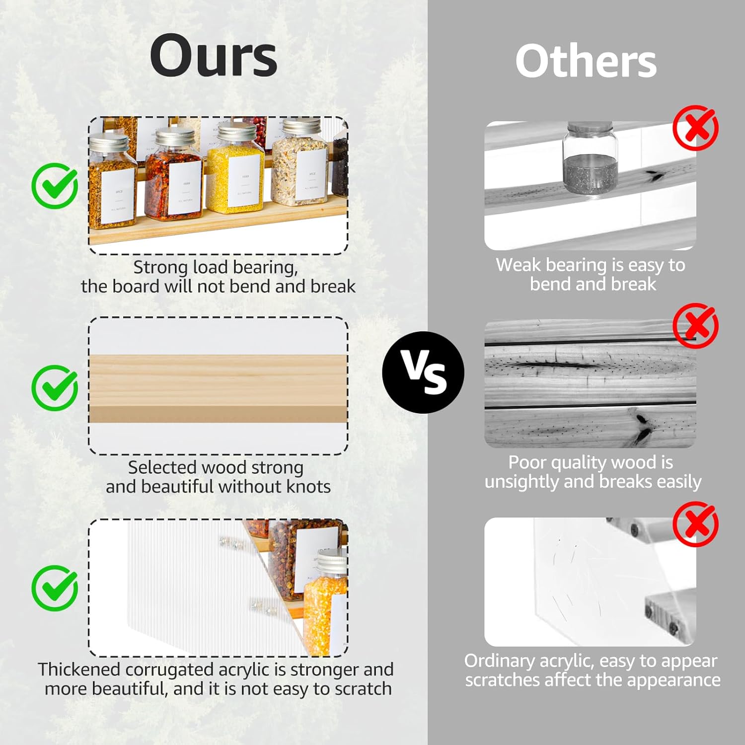 - Elegant & Sturdy: Risers display stands constructed from high-quality pine wood and corrugated acrylic, making it both aesthetically pleasing and fashionable, as well as durable and resistant to deformation, the spice shelf is a beautiful and robust addition to any space