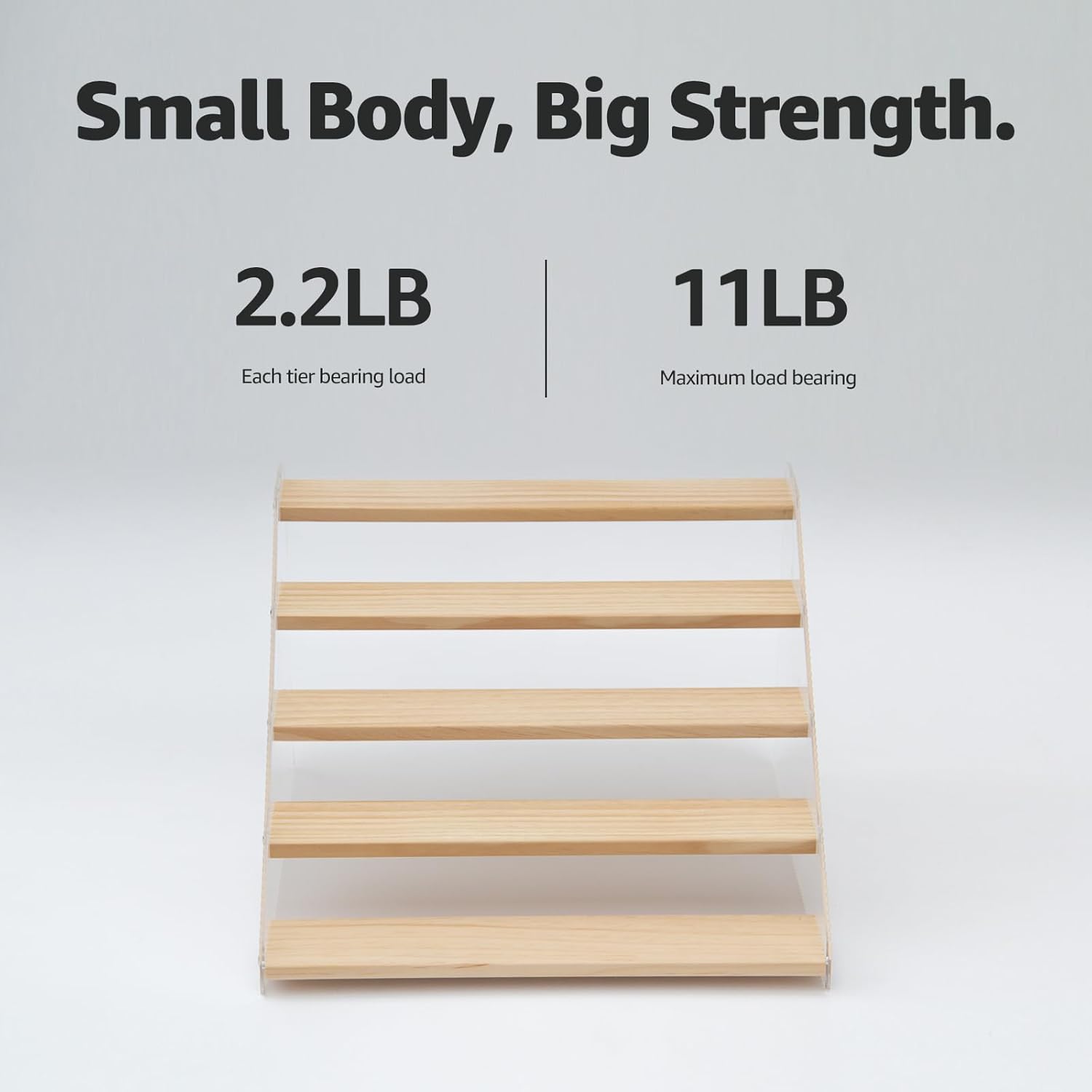 - Elegant & Sturdy: Risers display stands constructed from high-quality pine wood and corrugated acrylic, making it both aesthetically pleasing and fashionable, as well as durable and resistant to deformation, the spice shelf is a beautiful and robust addition to any space