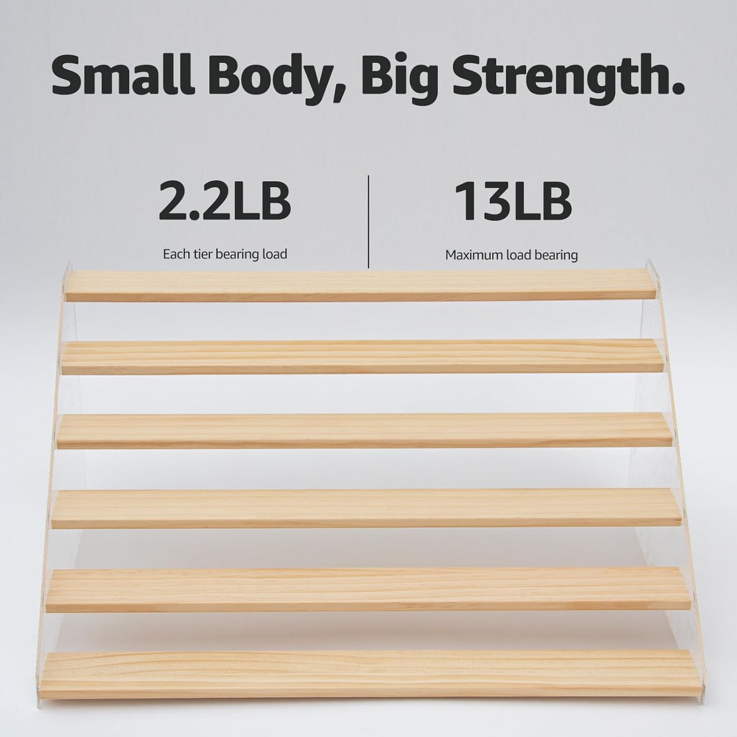 - Elegant & Sturdy: Risers display stands constructed from high-quality pine wood and corrugated acrylic, making it both aesthetically pleasing and fashionable, as well as durable and resistant to deformation, the spice shelf is a beautiful and robust addition to any space