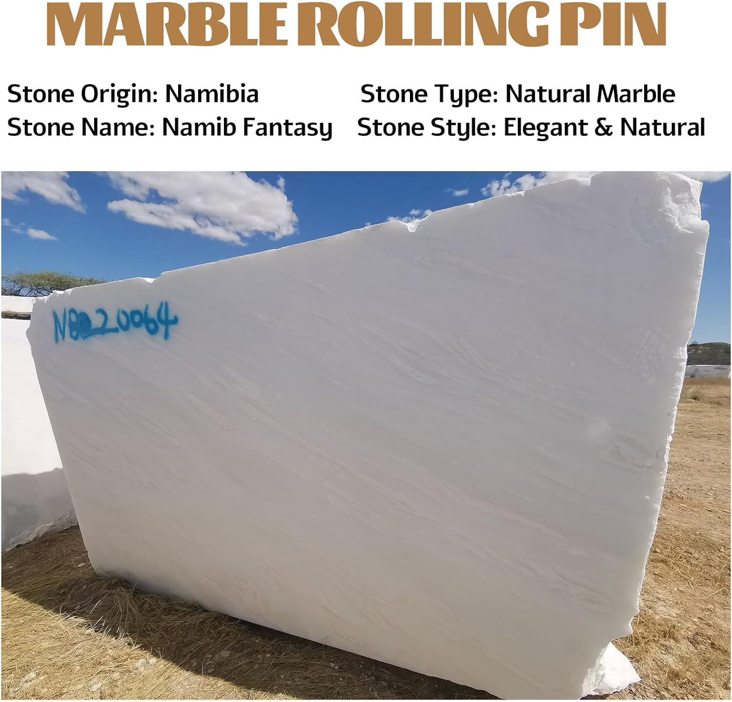 - Luxury African Marble: Koville marble french rolling pin comes from the distant and mysterious African continent - Walvis Bay, Namibia: the ancient mystery of the red desert, the blue sea of the quiet and distant, making it more attractive. Koville's passion for natural stone drives us to provide you with luxurious and stylish stone products.