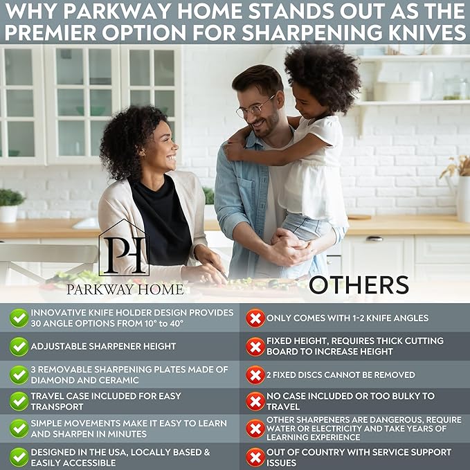 - 📏 DIFFERENT KNIVES HAVE DIFFERENT HEIGHTS: You can easily adjust the height of the sharpening plate with our patent pending height adjuster, perfect for large cleavers or butcher knives. No extra cutting board to raise height needed here!