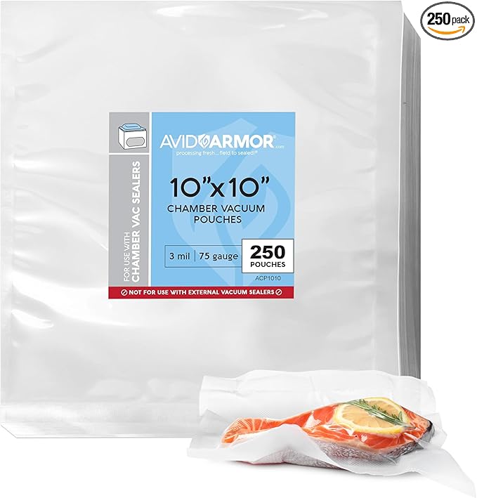 Avid Armor Chamber Vacuum Sealer Bags – Heavy Duty, BPA-Free, Pre-Cut Chamber Vacuum Bags for Food Preservation, Freezer Storage, Sous Vide and more, 250/Pack (10x10) – Multi-Use Vacuum Bags