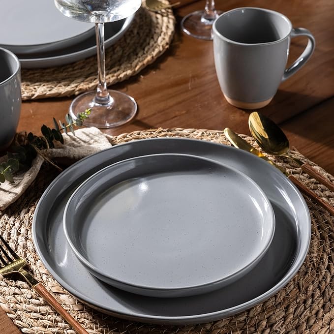AmorArc 12oz Ceramic Coffee Mugs set of 6, Stylish Coffee Mugs with Rustic Terracotta Underside for Latte/Cappuccino/Milk/Cocoa, Dishwasher&Microwave Safe, Gray