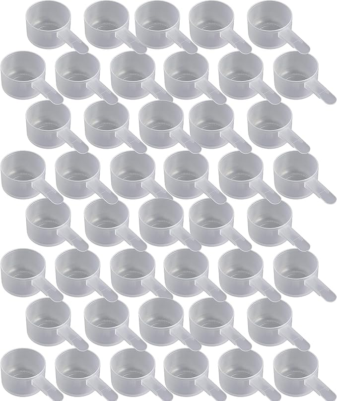 39 mL Plastic Measuring Packaging Scoop (= 39 cc/ = 8 teaspoon/ = 2.6 Tablespoon/ = 1.32 oz), Short Handle - to Measure and Dispense Spices, Granules, Powders, for Seeds Packing (100 scoops), Natural