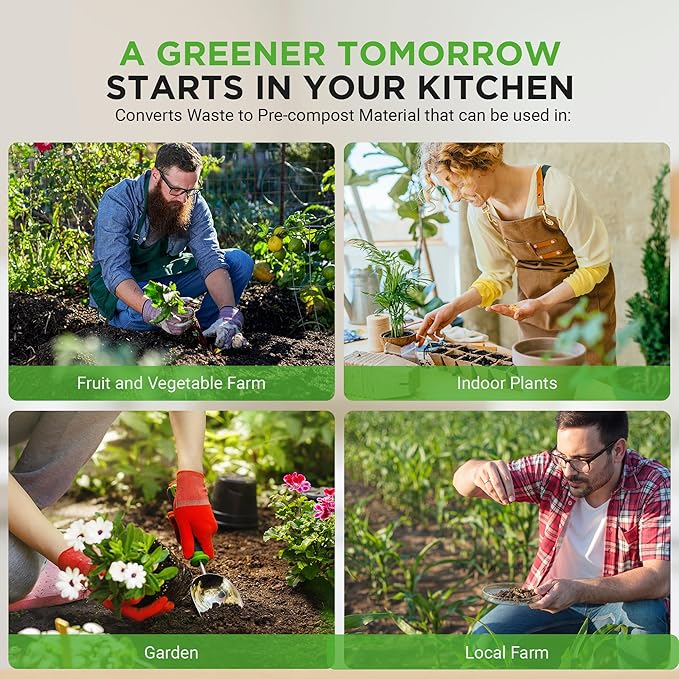 - EFFICIENT WASTE BREAKDOWN: Elevate your kitchen waste management with our state-of-the-art Food Waste Bin, featuring advanced Dry, Crush, and Cooling Functions. This design ensures the conversion of kitchen waste into valuable pre-compost material.