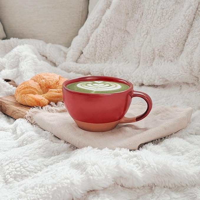 Mora Ceramic Latte Art Mug With Saucer - 10.5 oz, Round Bottom For Perfect Pours - Cafe Cups for Cappuccino, Espresso, Coffee, Tea etc - Porcelain Set for Baristas, Great Gift - Crimson Red
