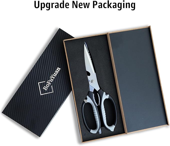 - EXCELLENT PACKAGING: Our multipurpose kitchen shears come in an exquisite packaging box, ideal kitchen essential gadget giving for professional chefs and home cooks
